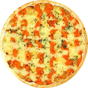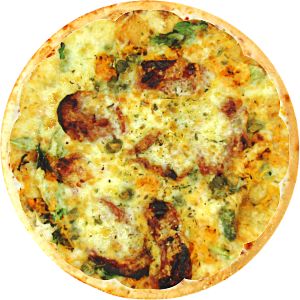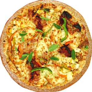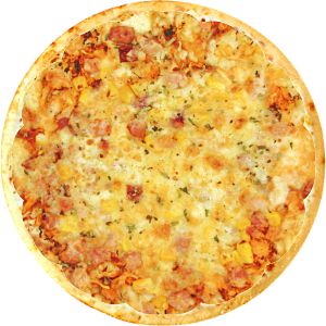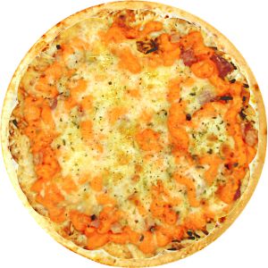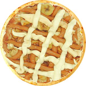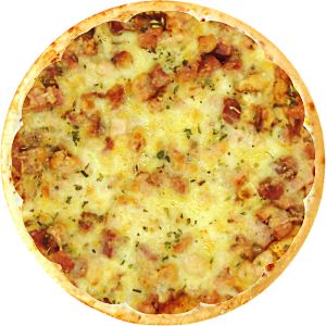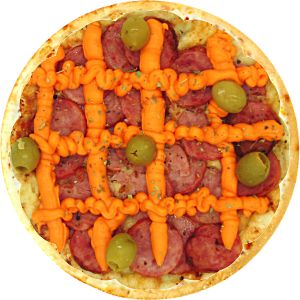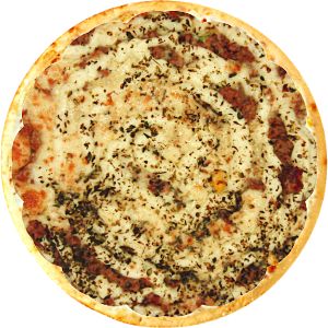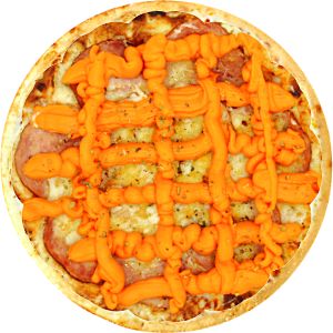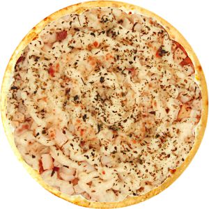 Calabresa, Frango desfiado, Molho de tomate , Muçarela, Orégano, Requeijão cremoso