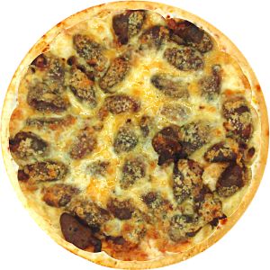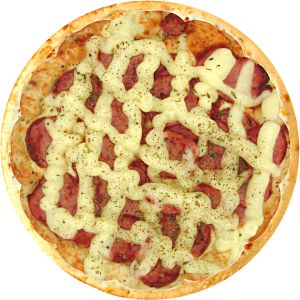 Calabresa, Champignon, Milho, Molho de tomate , Muçarela, Orégano, Requeijão cremoso