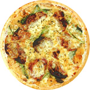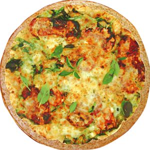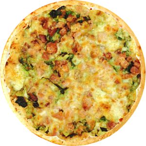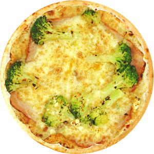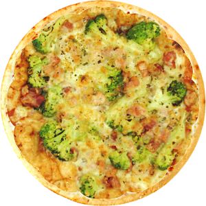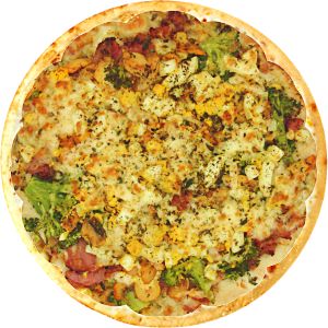 Alho, Brócolis, Calabresa, Champignon, Molho de tomate , Muçarela, Orégano, Ovo