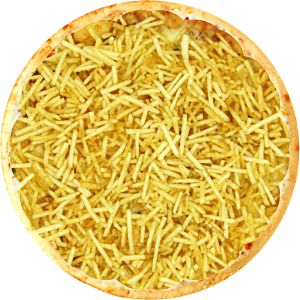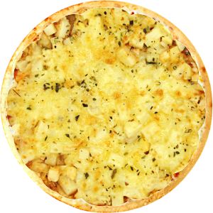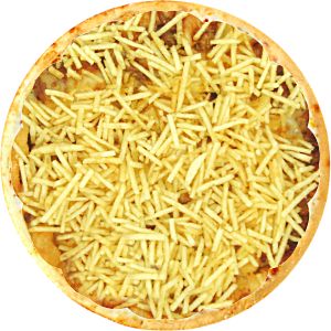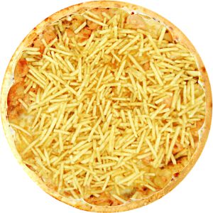 Batata palha, Frango desfiado, Molho de tomate , Muçarela, Orégano, Requeijão cremoso