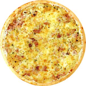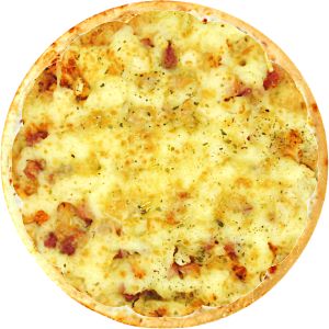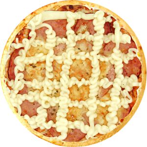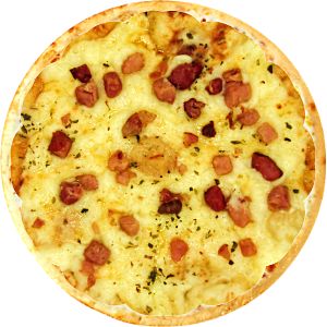 Bacon, Molho de tomate , Muçarela, Orégano, Parmesão, Provolone, Requeijão cremoso