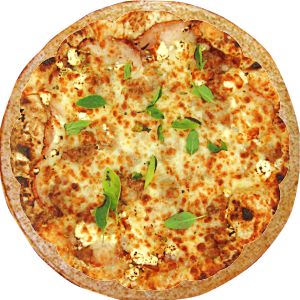Atum, Manjericão, Molho DNA, Muçarela de búfala, Orégano, Peito de peru, Ricota