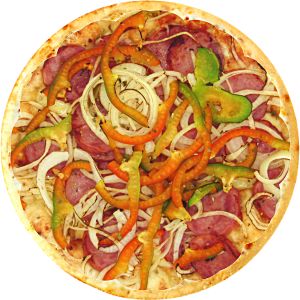Calabresa, Cebola, Molho de tomate , Muçarela, Orégano, Pimenta calabresa, Pimentão