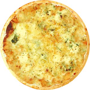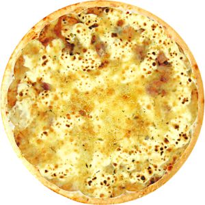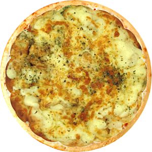 Cheddar, Gorgonzola, Molho de tomate , Muçarela, Orégano, Parmesão, Provolone, Requeijão cremoso, Ricota