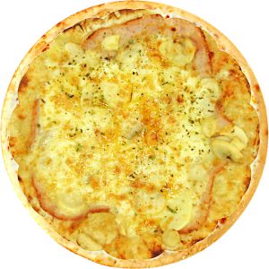 Bacon, Champignon, Molho de tomate , Muçarela, Orégano, Presunto, Requeijão cremoso