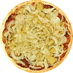 Cebola, Lombo, Molho de tomate , Muçarela, Orégano, Palmito